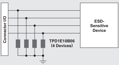 During normal operating conditions, the TVS behaves as a short-circuit. There exists parasitic capacitance to ground.