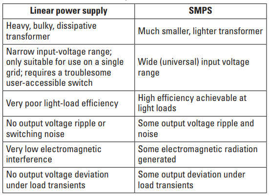 The high-frequency switching of a SMPS generates significant EMI and causes a ripple (50mV typical) at the output. See Figure 3 below. Linear PSU’s are inherently quieter.