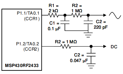 Many applications such function generators, musical tuners and toys require analog signals. Rather than use a separate DAC, these signals can be achieved with the MSP430 and a lowpass filter (LPF). The latter will be built from external components.