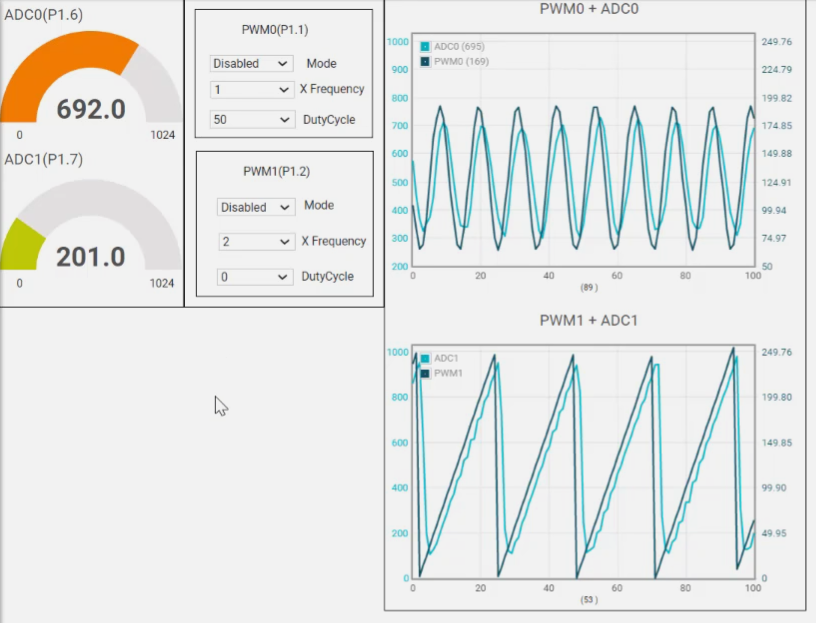 - Observe the ADC value which corresponds to the outputted waveform