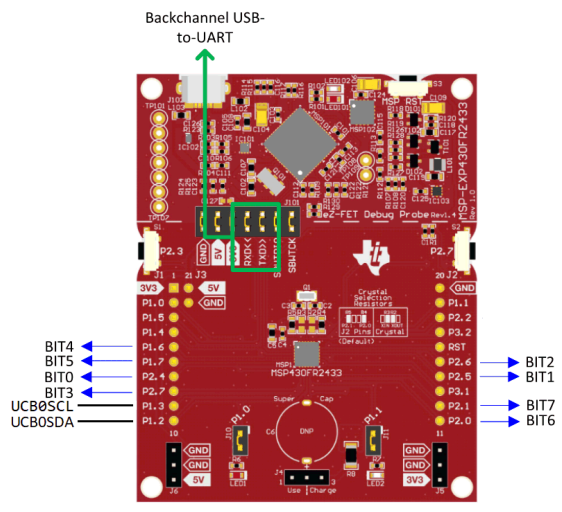 The MSP430 outputs the data to/reads the data from the I/O pins