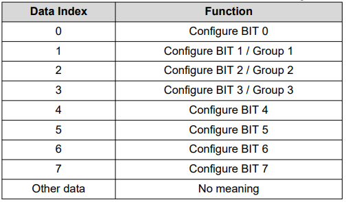 The data index byte determines which group or bit number to write to. Table 2 below lists out the possible actions: