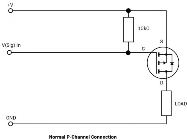 P-channel FETs are used as high-side switches. A P-channel FET conducts with a negative VGS.