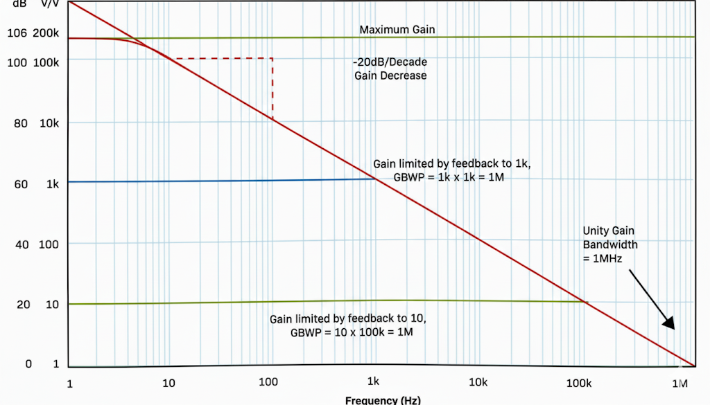 Gain = GBW / Frequency (max)