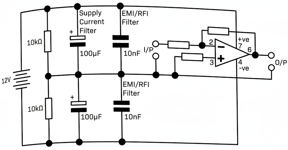 CMRR is a measure of how well the opamp rejects noise common at both its inputs. This is relevant as crosstalk or other noise sources can induce noise on the opamp inputs. For the LM741, it’s CMRR is 90dB. In other words, the noise voltage is minimized by x92,000.