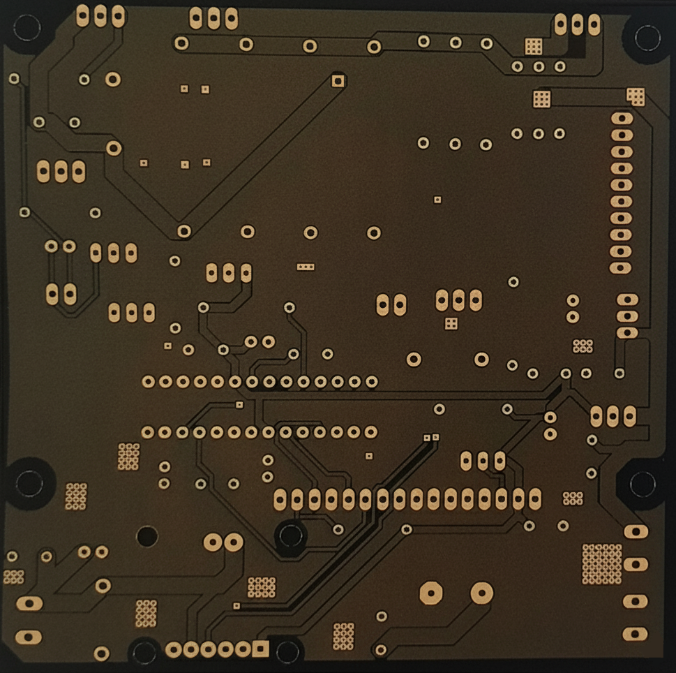 A ground copper pour was used. This makes hand soldering more difficult. Thermal reliefs were used to mitigate this.