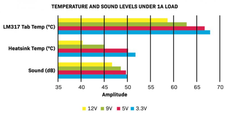 - The PSU had a superior load regulation. At 1A, the PSU continued to supply 12V