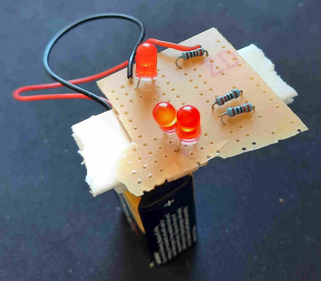 Schematic and a photo of the circuit constructed in-real-life is displayed below