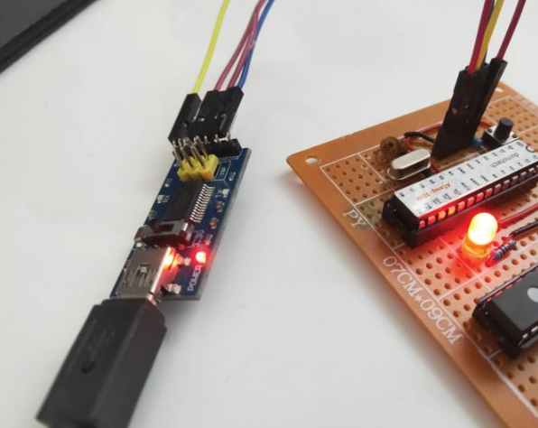For uploading the code, I used a FTDI micro-USB programmer. This device converts USB data into serial data that is compatible with the ATmega328p.